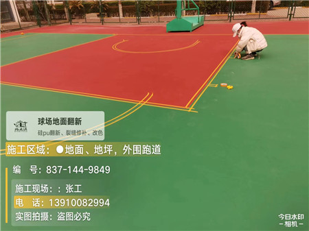 3. 材料适配施工:根据地面材质(硅 PU、塑胶、水泥)选用对应底漆、弹性层或面层材料,控制施工厚度与环境温湿度。